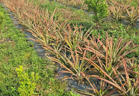 Organic Queen pineapples grown with regenerative practices—compost, intercropping, and soil restoration—producing clean, aromatic fruit with strong sweetness and traceable quality.